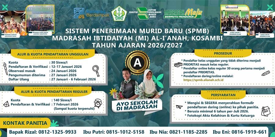 Sistem Penerimaan Murid Baru (SPMB) Madrasah Ibtidaiyah (MI) Al I`anah Tahun Ajaran 2026-2027